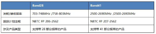 2020年10月26日,NBTC決定駁回僅支持Band 28和Band 41部分頻段的WWAN用戶設備申請。