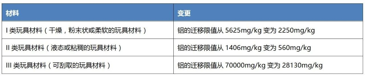 對(duì)比前一版本,本次主要修訂了鋁元素的遷移限值,詳見(jiàn)如下