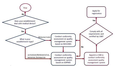 獲得確認(rèn)函;列入醫(yī)療器械注冊;或通過其中一條授權(quán)路線授權(quán)。一般來說,A類、B類、C類和D類醫(yī)療器械必須在馬來西亞市場供應(yīng)之前向MDA注冊。馬來西亞也允許將產(chǎn)品分組為單個、系列、系統(tǒng)、集合、IVD測試套件或IVD集群。