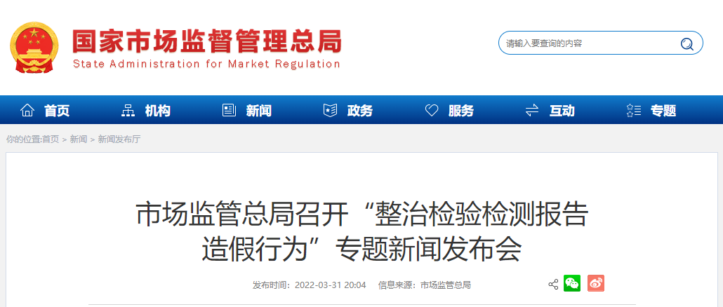 2022年3月31日,國(guó)家市場(chǎng)監(jiān)督管理總局以“整治檢驗(yàn)檢測(cè)報(bào)告造假行為”為專(zhuān)題召開(kāi)新聞發(fā)布從2021年度各級(jí)市場(chǎng)監(jiān)管部門(mén)已經(jīng)查處的檢驗(yàn)檢測(cè)違法違規(guī)案件中,選取了17個(gè)涉及檢驗(yàn)檢測(cè)報(bào)告造假的典型案例進(jìn)行集中曝光。