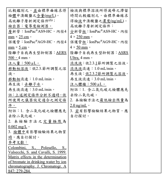 四、「再生液」配合陰離子自我再生型抑制器修正,由「50 mN 硫酸溶液」修正為「去離子水」。